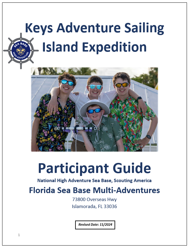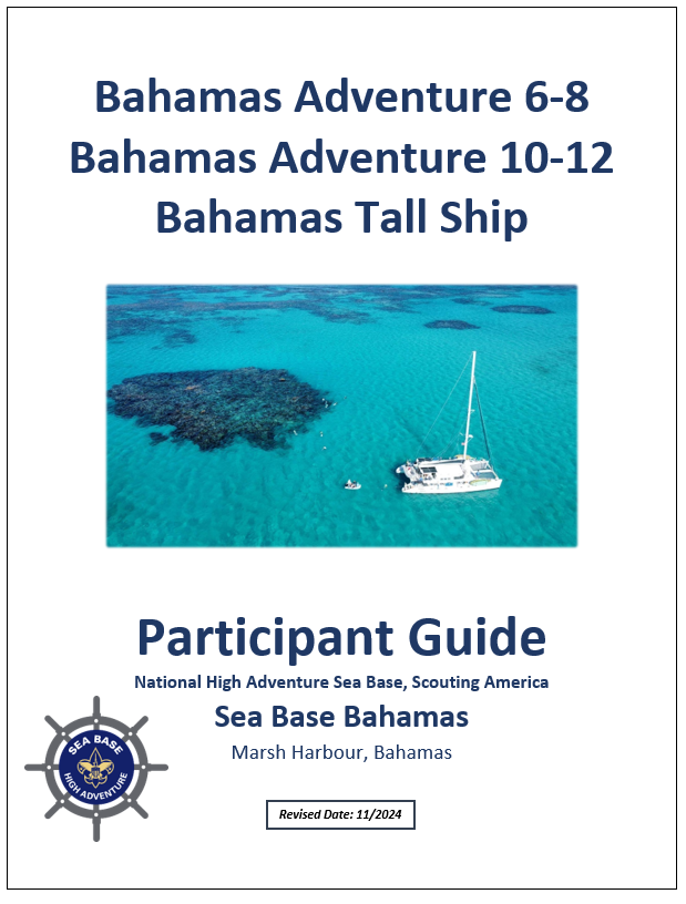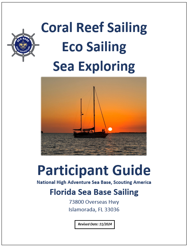 Please find and share the participant guides below with your Sea Base crew. There have been minor updates to resource links, required paperwork, adult leadership and co-ed crew information, as well as specially needs accessibility information (COASTS).