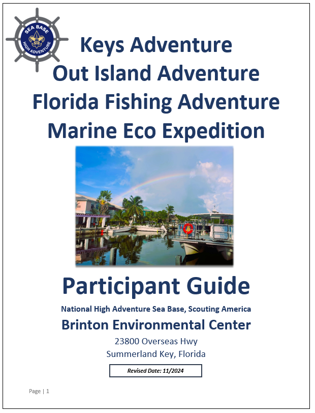 Please find and share the participant guides below with your Sea Base crew. There have been minor updates to resource links, required paperwork, adult leadership and co-ed crew information, as well as specially needs accessibility information (COASTS).